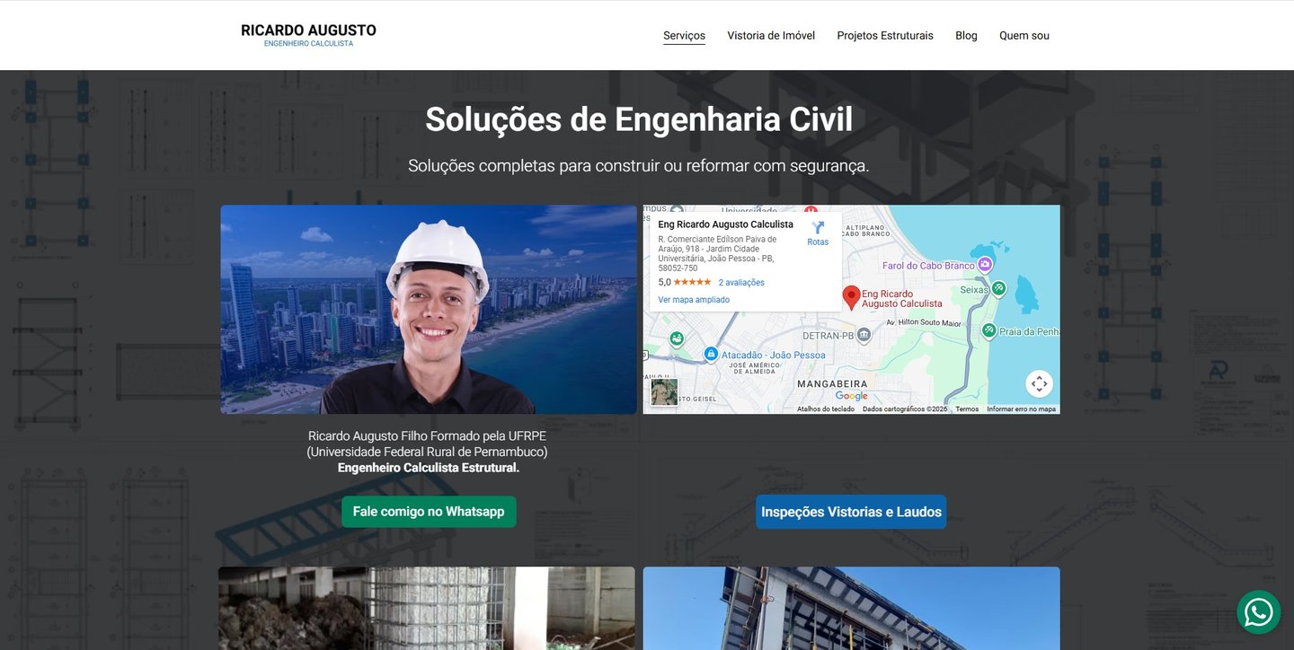 Criação de sites profissionais e posicionamento no Google para engenheiros civis e empresas de engenharia que querem atrair clientes e fechar mais contratos.
